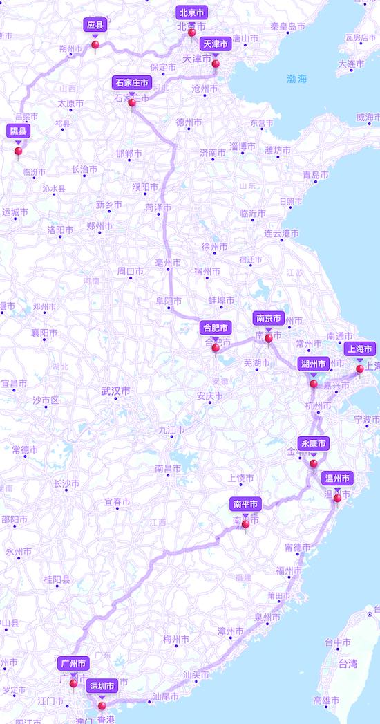 2024 年自己开车经过 13 个县市,不少地方是人生中第一次踏入。从湖州出发先行往南,在深圳市区被一辆滴滴追尾,修车需要三周不得不先高铁往回走,路过温州和上海,把南边所有城市走完。八月份车修好后找拖运公司把车从深圳拖回来再继续北方行程。总计耗时一个月,开车 8000 公里,慢慢晃悠沿途想停就停比较惬意,见了二十多号人,大部分是多年老朋友,少数几位第一次见,一路都被大家照顾得很好,感恩。